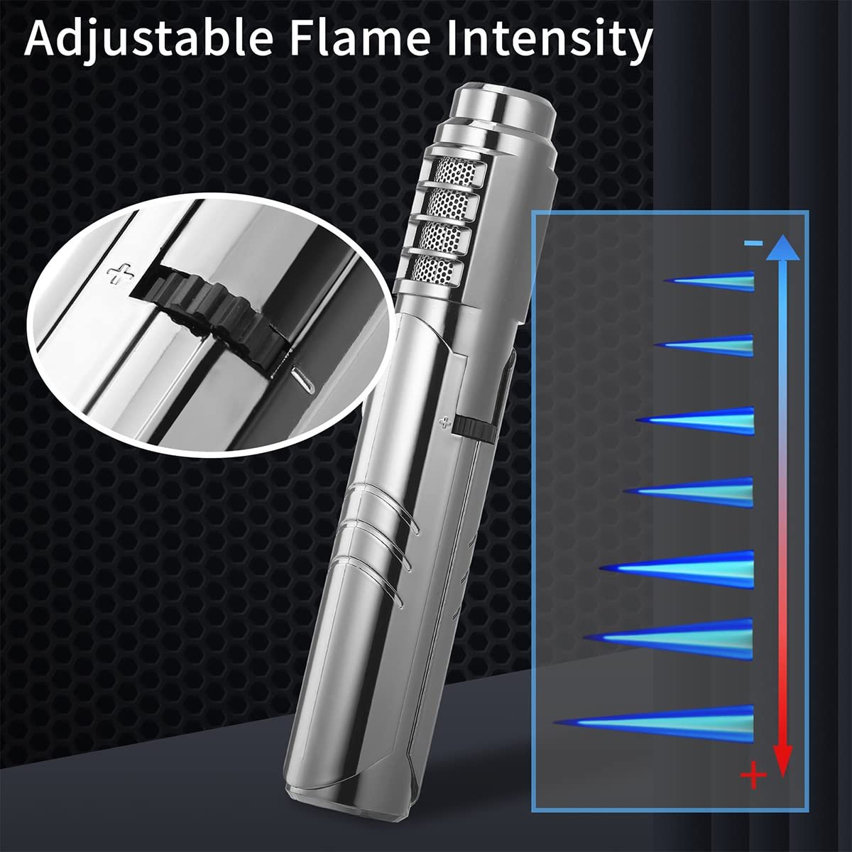 🔥 Adjustable Flame Intensity: Easily control flame with the side knob—no tools required. Ideal for lighting cigars, cooking crème brûlée, grilling, cocktails, or outdoor use like bonfires and camping.